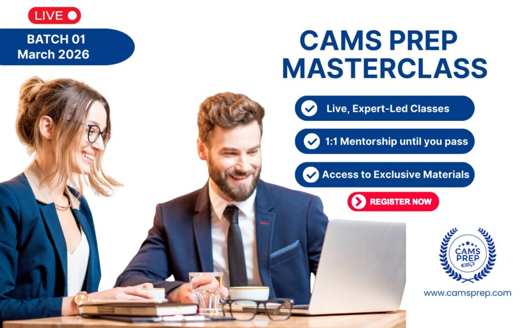 CAMS Prep Masterclass, in just 5 weeks and 20 hours live classes, takes you from foundational concepts to full exam readiness.